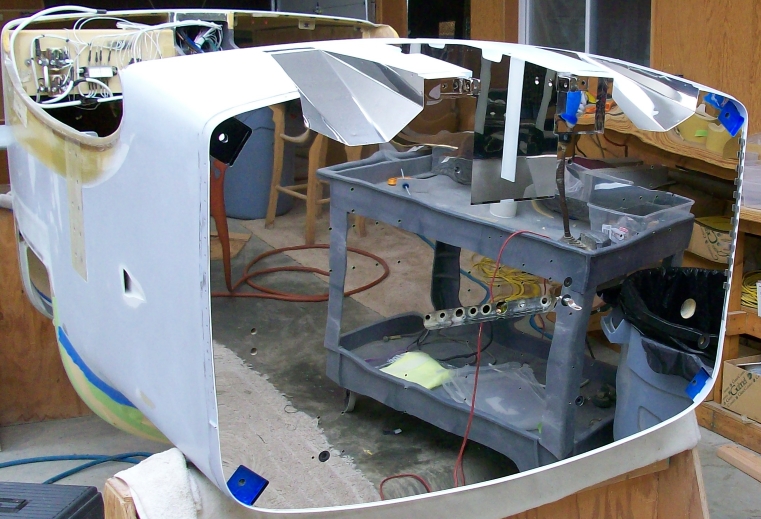 We wanted to have all the fuel, oil, and hydraulic lines come through the same passthrough area, so we made an oval inset in the firewall centered above the nose wheel well.
